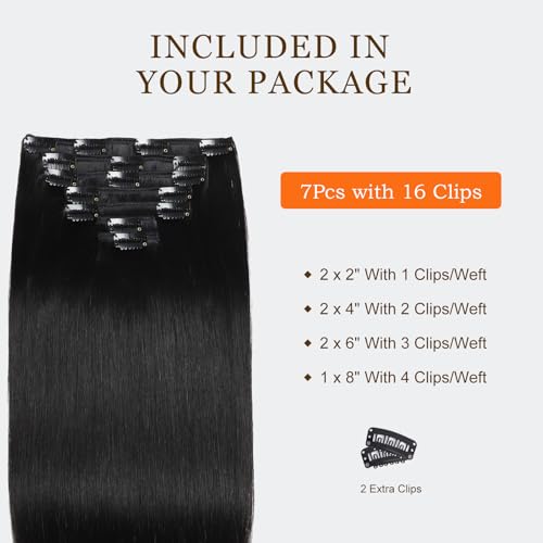 Clip in Hair Extensions Real Human Hair, Invisible Seamless Straight Remy Human Hair Extensions Clip ins for Women (1B Natural Black, 22'')