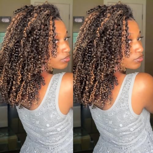 Ombre Highlight Brown Kinky Curly Half Wig Human Hair 1B 30 Curly 3 In 1 Seamless Flip Over Afro Curly Half Wig For Women 210% Density Glueless Wear and Ready to Go Drawstring Headband Wig 20 Inch