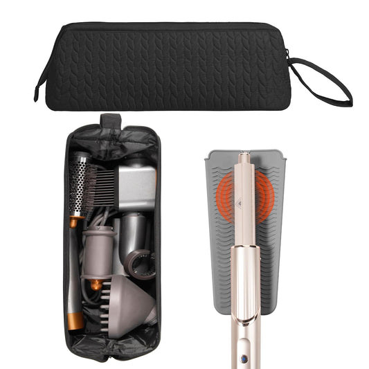 Hair Tools Travel Bag Case, Hair Accessories Organizer with Heat Resistant Mat, Flat Iron Curling Iron Travel Case for Shark Flex Style, Silicone Heat Mat for Hair Tools, Hot Tools Travel Bag (Black)