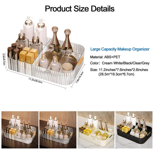 DASITON Large Capacity Makeup Organizer,12 Slots Makeup Brush Holder,Makeup Storage with Handle,Vintage Striped Cosmetic Organizer for Bathroom Countertops,Desk Storage Container(Clear)