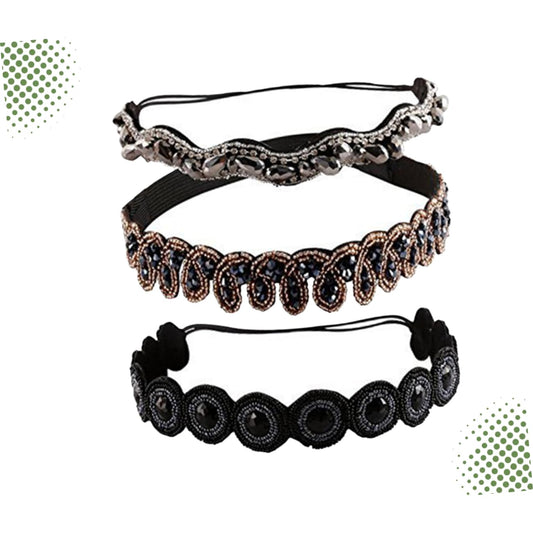 Beavorty 3pcs Vintage Hair Bands Decorative Hair Ties Handcraft Beaded Headwrap Stretchy Headband Sparkly Beaded Head Bands Retro Hair Band Headbands Girls Hijab Beads Diamond Miss