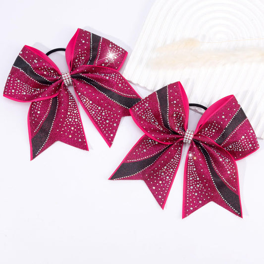 CN 6PCS Glitter Cheer Bows for Cheerleaders, Hot Pink Sparkly Large Hair Bows for Girls Cheerleading with Elastic Hair Ties,Cheer Hair Accessories for Softball Competition School Spirit