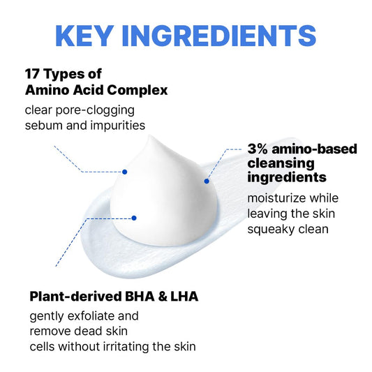 MAKE P:REM Safe Me. Amino Refresh Cleansing Foam, Korean Face Wash, Instant Deep Pore Cleansing, Gentle Exfoliation with BHA & LHA, Korean Skin Care, 5.07 Fl Oz, 150ml