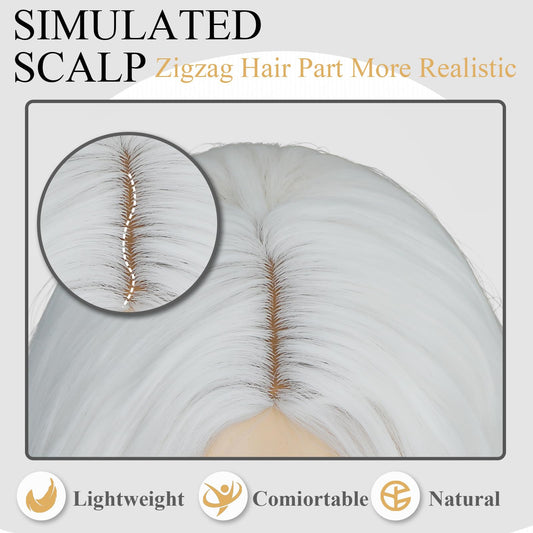GOWIT White Wigs for Women 30 Inch Long Wavy Wig Glueless Middle Part Curly Wavy Wigs Natural Looking Heat Resistant Synthetic Wig for Halloween Christmas Daily Cosplay Party Use