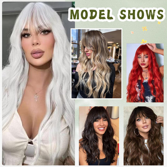 Long Ombre Blonde Wavy Wig With Bangs for Women 26 Inch Curly Wavy Wig With Bangs Natural Looking Synthetic Heat Resistant Fiber Wig for Daily Party Use