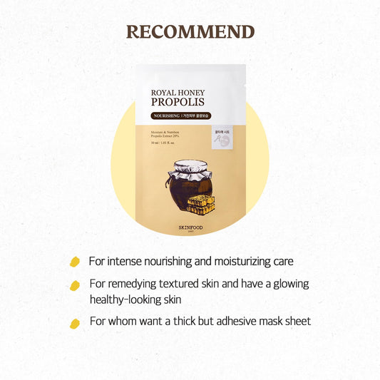 SKINFOOD Royal Honey Mask10ea Set - Bee Propolis Extract, Royal Honey Extract, Intensely nourishes and hydrates tired and dull skin 9.1fl.oz, 270ml