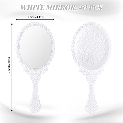 Namalu 40 Pcs Vintage Handheld Mirror Small Embossed Portable Princess Cute Compact Mirror with Handle for Women Valentine Party Favors Travel(White)