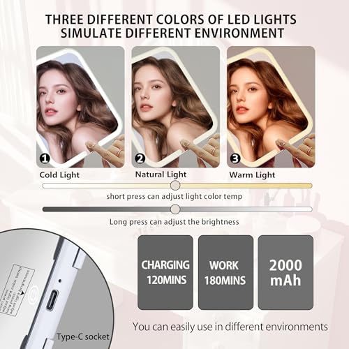 Portable Travel Makeup Bag with Mirror and Light - 3 Colors,Adjustable Brightness Spacious Cosmetic Organizer,Mermaid Shine Blue