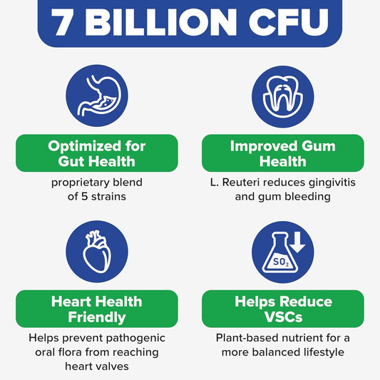 Oral Probiotics for Bad Breath Treatment - Dental Health Lozenges for Adults - 60 Peppermint Chews