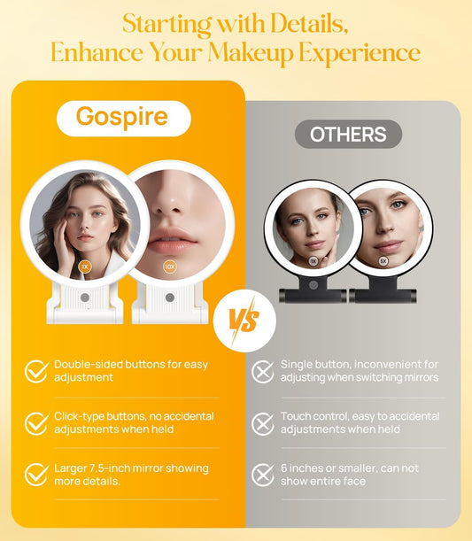 7.5” Lighted Makeup Mirror with 1X/10X Magnification - Rechargeable LED, 3 Color Modes, Adjustable Handle for Travel & Desk Use - White