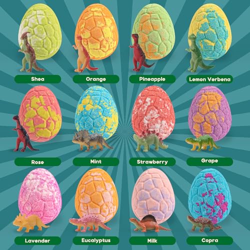 Bath Bombs for Kids with Surprise Toys Inside - 12 Pack Natural and Organic Dinosaur Bath Bombs Gift Set, Handmade Organic Bubble Bath Fizzies, Perfect Christmas Birthday Gifts for Kids