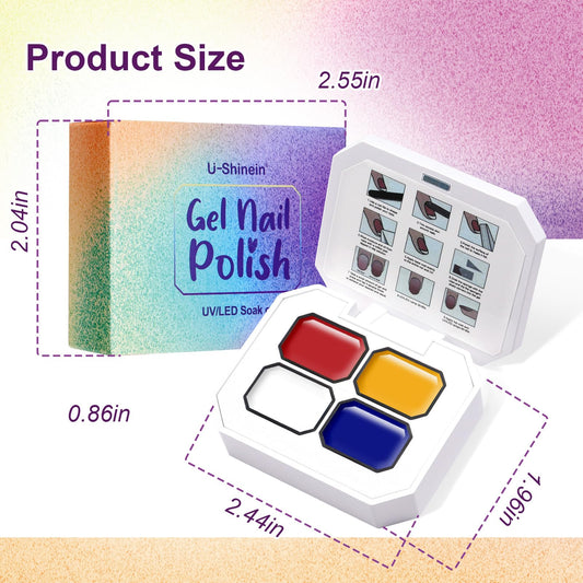 U-Shinein Gradient Painting Gel, 4 Colors Ombre Gel Nail Polish for Ombre Nails Aura Nails French Manicure Blush Nail Art Long-lasting Soak Off UV DIY Nail Art Palette Primary Colors