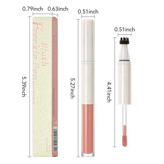 Freckle Blush Pen,2 in 1 Double-ended Waterproof Long Lasting Ultra-Blendable Quick Dry Coffee Freckle Stamp Pencil and Orange Liquid Blush for Natural Face Makeup,Vegan & Cruelty -free