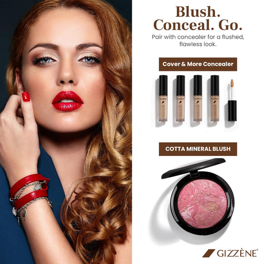Gizzene Mineral Blush Powder – Medium Coverage Terracotta Blush for Cheeks & Face with High Pigments for Shiny, Healthy Natural Finish – Buildable, Sweat Proof Makeup Blush (Pink Marble)