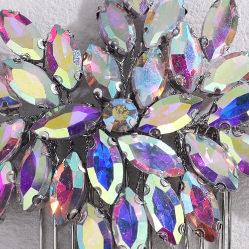 Rumtock AB Color Crystal Beads Silver Hair Comb for Wedding Brides Women Banquet Hair Accessories Vintage Gold Headpiece (AB Color)