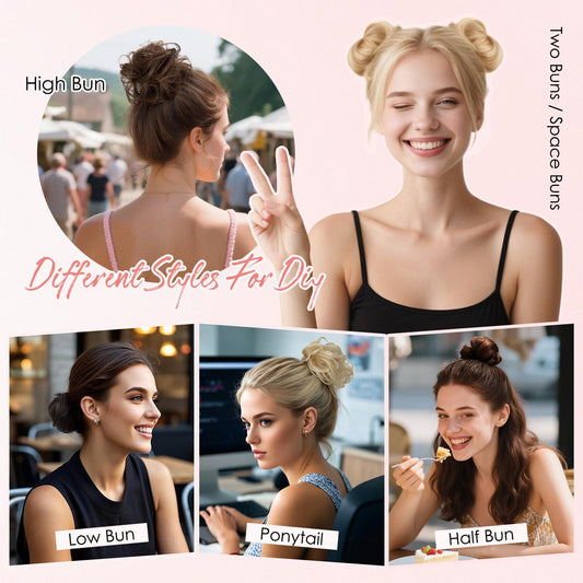 Hairro Human Hair Messy Bun, 100% Real Ponytail Hair Scrunchies, Natural Curly Chignon Fluffy Donut Updo, Hairpiece with Elastic Rubber Band for Women, 1 Count Golden Brown Straight