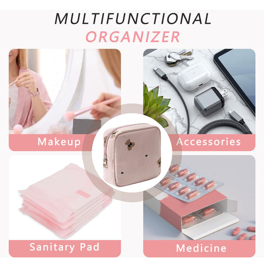 RSRSLEII Cute Mini Corduroy Zipper Makeup Bag for Purse, Coquette Aesthetic Pouch with Bear Pattern for Women Girls,Key Pocket Lipstick Bag Card Holder Data Cable Organizer(01Pink Bear)