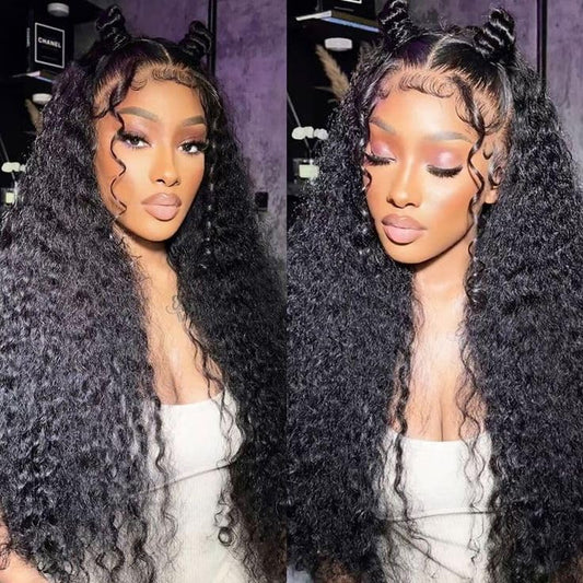 Jukabe 13x6 Deep Wave Lace Front Wigs Human Hair Pre Plucked 200 Density HD Transparent Lace Frontal Wigs Human Hair for Women Glueless Wigs Human Hair with Baby Hair 26 Inch