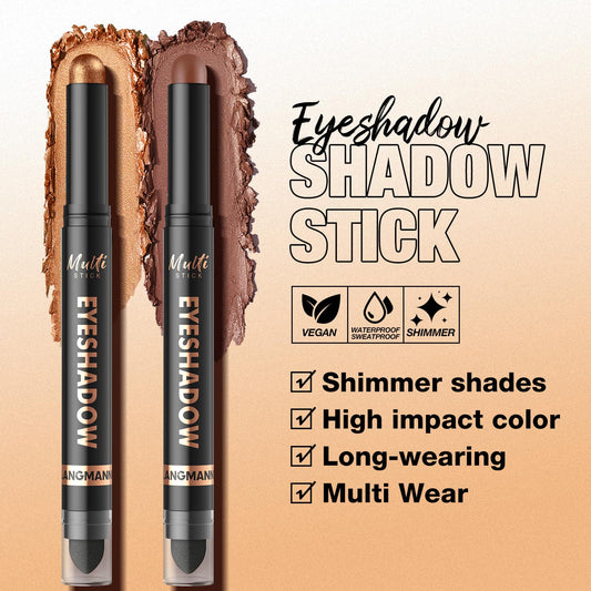 LANGMANNI 8Colors Dual-Ended Eyeshadow Stick Set – Silky Smooth, Waterproof & Transfer-Proof, Built-in Blender Brush, All-Day Matte & Shimmer Wear Eye Makeup(#A)