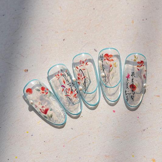 Vintage Red Flower Nail Art Stickers for Acrylic Nails Decoration Green Leaf Nail Decals 5D Embossed Self-Adhesive Nail Design Stickers for Women DIY Spring Nail Art Supplies - 1 Sheet