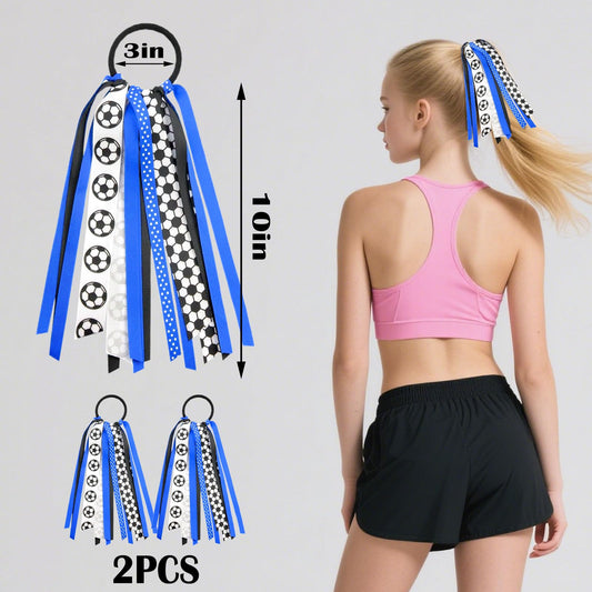 Ftuuo 2pcs Soccer Ponytail Holders Hair Ribbons Streamer Blue Black Soccer Elastic Hair Ties Band Hair Scrunchies Game Day Party Accessories Back School Gift for Women Cheerleader Fans