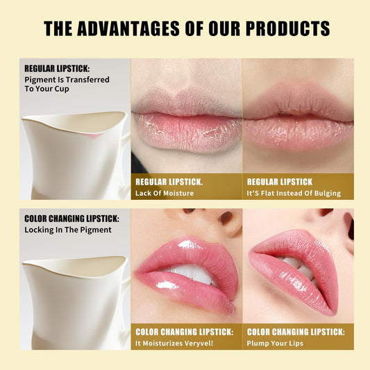 Transferproof Color Changing Lipstick,Color Changing Lipstick for Women Girls,Temperature Change Moisturizer,Waterproof Moisturizer Lip Balm(Gold Foil)