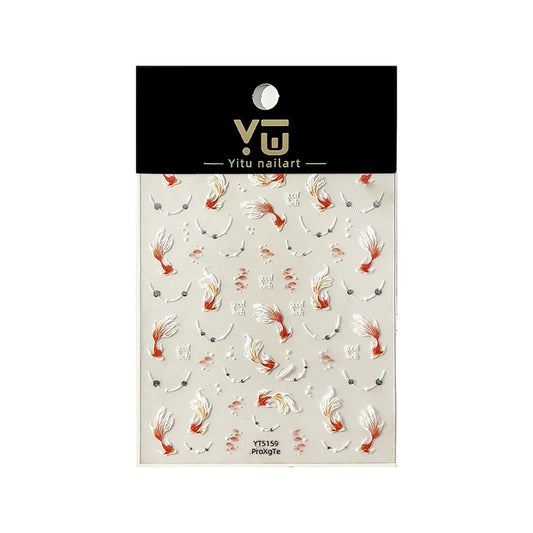 5D Embossed Koi Fish Nail Stickers Self-Adhesive Goldfish Nail Art Stickers Sparkly Koi Pearl Rhinestones Designs Cute Nail Art Supplies Glitter Nail Decals for Women Girls Acrylic Nail Salon DIY