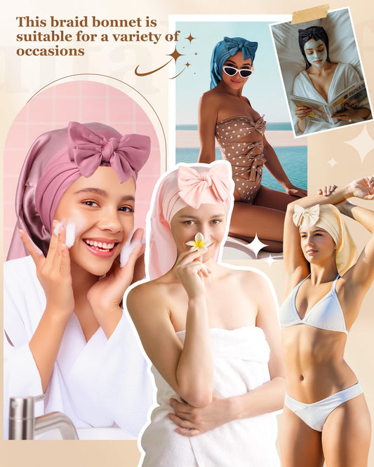 100% Mulberry Silk Bonnet for Sleeping Women Braid Bonnet for Long Hair with Elastic Tie Band Hair Wrap for Braids Curly Hair