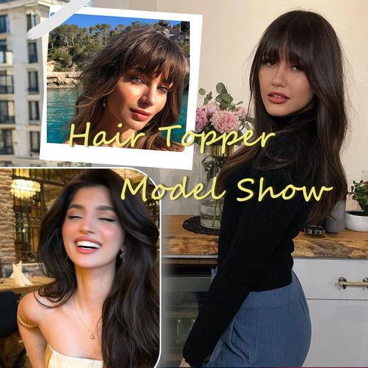 YOOSDPET Hair Toppers for Women Real Human Hair, 360°3D Cover Topper for Women with Thinning Crown Wispy Clip in Bangs Realistic Scalp Line Hair Pieces (Mocha Brown, Wispy Bangs)