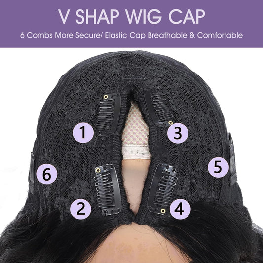 V Part Wig Human Hair Kinky Straight Human Hair Wigs Upgrade U Part Human Hair Wig for Women No Leave Out No Sew In 200% Density Natural Color 28 Inch