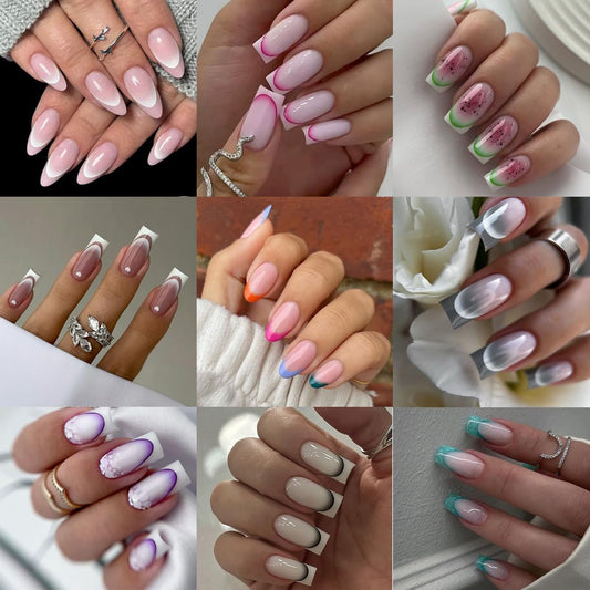 8 Sheets French Tip Nail Stickers 3D Self-Adhesive Frenchs Nail Art Stickers Colorful Curved Lines Design Nail Art Supplies Gradient French Tip Nail Decals for Women Girls Acrylic Manicure Kit DIY