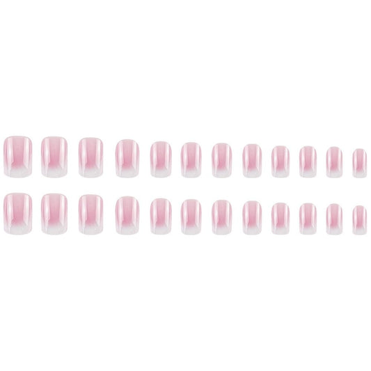 Press on Nails Kit Medium Square Ombre Nude Pink White Fake Glue ons Nails Set with Design Full Cover Artificial False Stick on Acrylic Nail for Women 24PCS