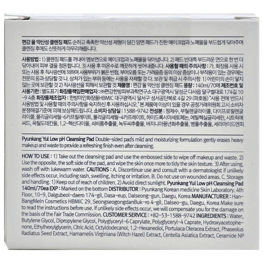 [PKY] PYUNKANG YUL Low pH Cleansing Pad, 140ml 70ea Makeup Cleansing Wipes Hypoallergenic and dermatologist-tested
