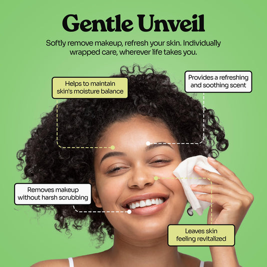 Pink Sky Makeup Remover Wipes for Face - Ultra Soft, Mini Makeup Wipes Individually Wrapped, Travel Makeup Wipes, Gently Cleanse & Remove, 40 Count (40 Wipes, CUCUMBER & GREEN TEA)