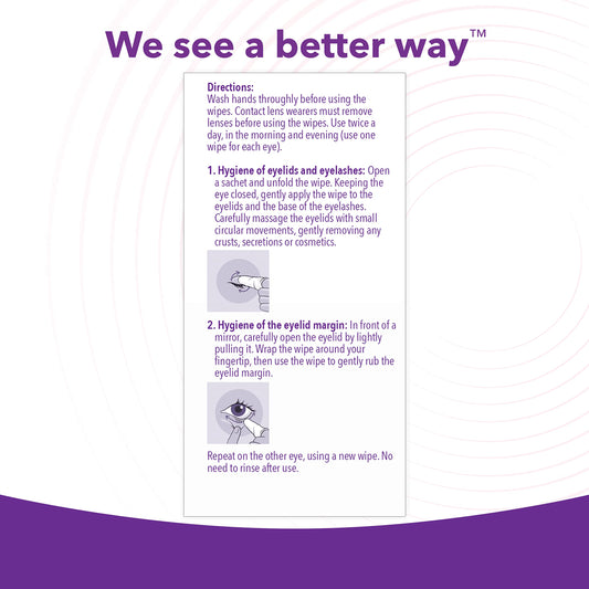 iVIZIA Eyelid Cleansing Wipes for Sensitive Eyelid Cleansing, Preservative-Free, Micellar, No Rinse, Gentle Eye Makeup Remover, 20 Sterile Single-Use Wipes for Eyelids Packaging May Vary