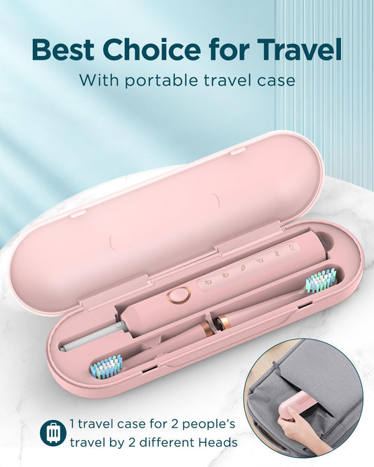 Rtauys M5 Sonic Electric Toothbrush for Adults and Kids - Rechargeable Electric Toothbrush Kids Ages 12+ and Adults with 8 Brush Heads & Travel Case, 120 Days Battery Life - Pink