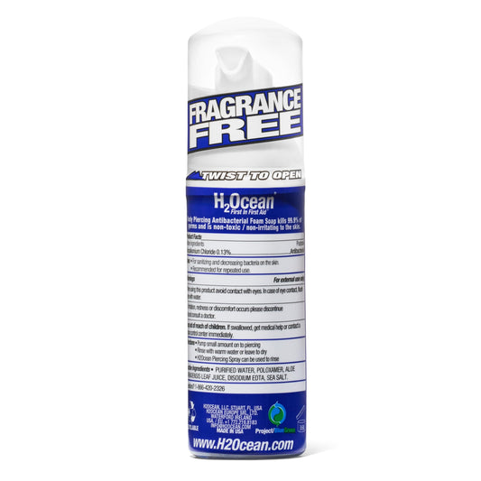 H2Ocean Body Piercing Foam Soap - Organic Sea Salt Piercing Aftercare with Aloe Vera, Alcohol-Free, Unscented, Vegan & Gentle Cleansing Tattoo and Piercing Soap for Healing & Moisturizing - 1.7oz