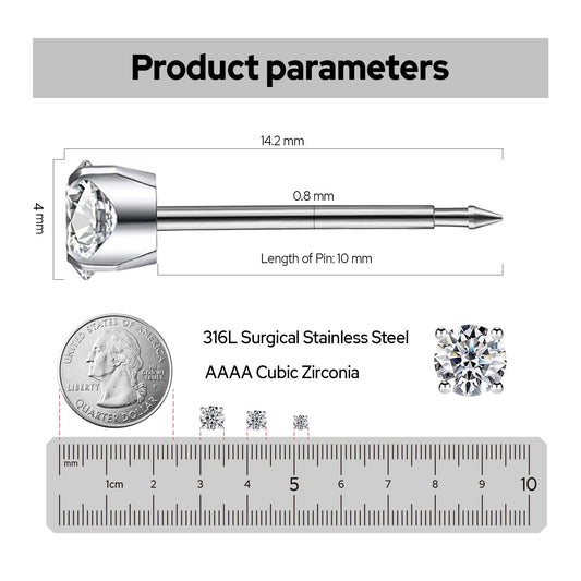 SugarTang Ear Piercing Kit | Disposable Ear Piercing Gun Kit Made in 316L Surgical Stainless Steel 4mm - 4prong Cubic Zirconia | At Home Self Piercing Kit with Earrings Studs