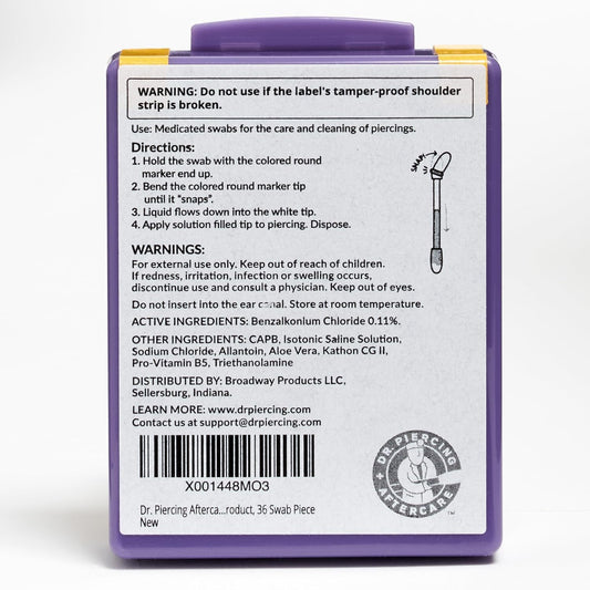 Dr. Piercing Aftercare Swabs – Piercing Bump Saline Solution for Cleansing Earring, Nose, Belly, and Ear Piercings – Gentle Saline Wash for a Refreshing Experience – 36 Easy-to-Use Swabs (1-Pack)