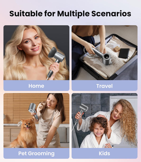 Hair Dryer: 150000 RPM Portable Professional High Speed Ionic Blow Dryer for Fast Drying, 500 Million Negative Ions Care & Heat Control & Low Noise with Magnetic Diffuser & Nozzle, 5 Temps & 3 Speeds