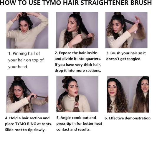 Hair Straightener Brush, TYMO Ring Hair Straightener Comb Straightening Brush for Women with 5 Temps 20s Fast Heating & Dual Voltage, Black