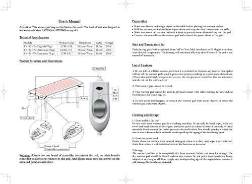 Therapist’s Choice® Massage Table Warmer, 3 Heat Settings, Detachable Controller, For Use with Massage Tables Only, Do Not Use as a Bed Blanket Warmer
