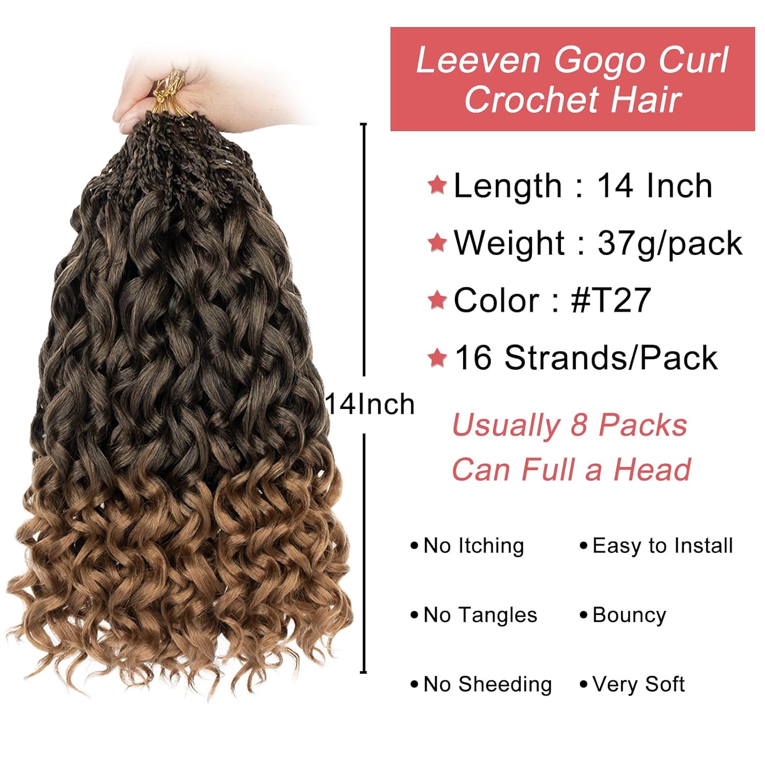- PACKAGE: Each package contains 8 packs Gogo Curl Crochet Hair and a crochet needle, 16 strands/pack, 128 roots in total.Usually 8 packs can full a head.