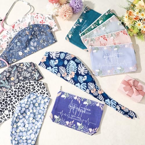 - Functional and Comfortable Fit: scrub hats measure about 22.4 inches with elastic and adjustable ties, suitable for most head sizes and hairstyles; Makeup pouches bulk measure 9.1 x 5.9 x 1.6 inches, ideal for organizing toiletries, pens, or small gear