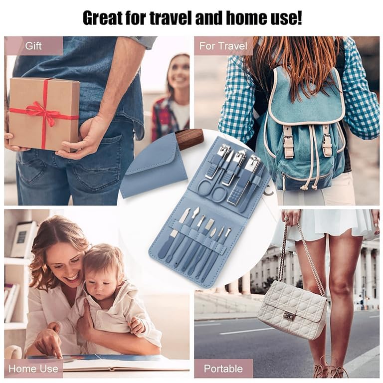 12-Piece Professional Nail Clipper Set - Stainless Steel Manicure & Pedicure Kit with Folding Case, Complete Nail Care Tools (Blue)