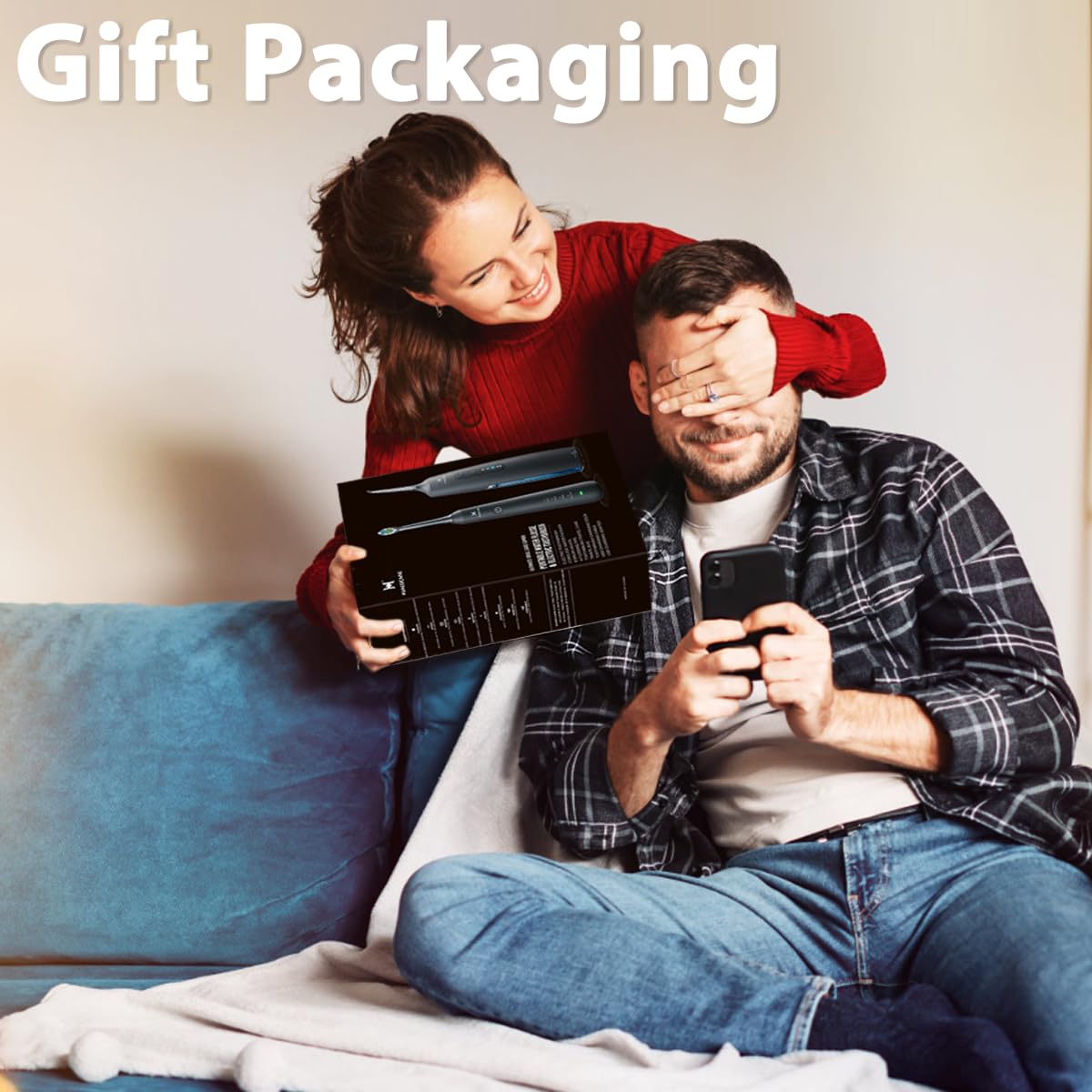 - 【Powerful Sonic Toothbrush】Ultrasonic motor generates 38,000 micro-vibrations per minute. More whitening effect and deeper reach. Electric toothbrush cleans the surface of your teeth deeper to prevent stains and reduce plaque. Intelligent automatic timer with 30-second intervals ensures that the dentist-recommended 2-minute brushing time is met.4 brushing modes make the most of each brushing session to suit different teeth and gum conditions.