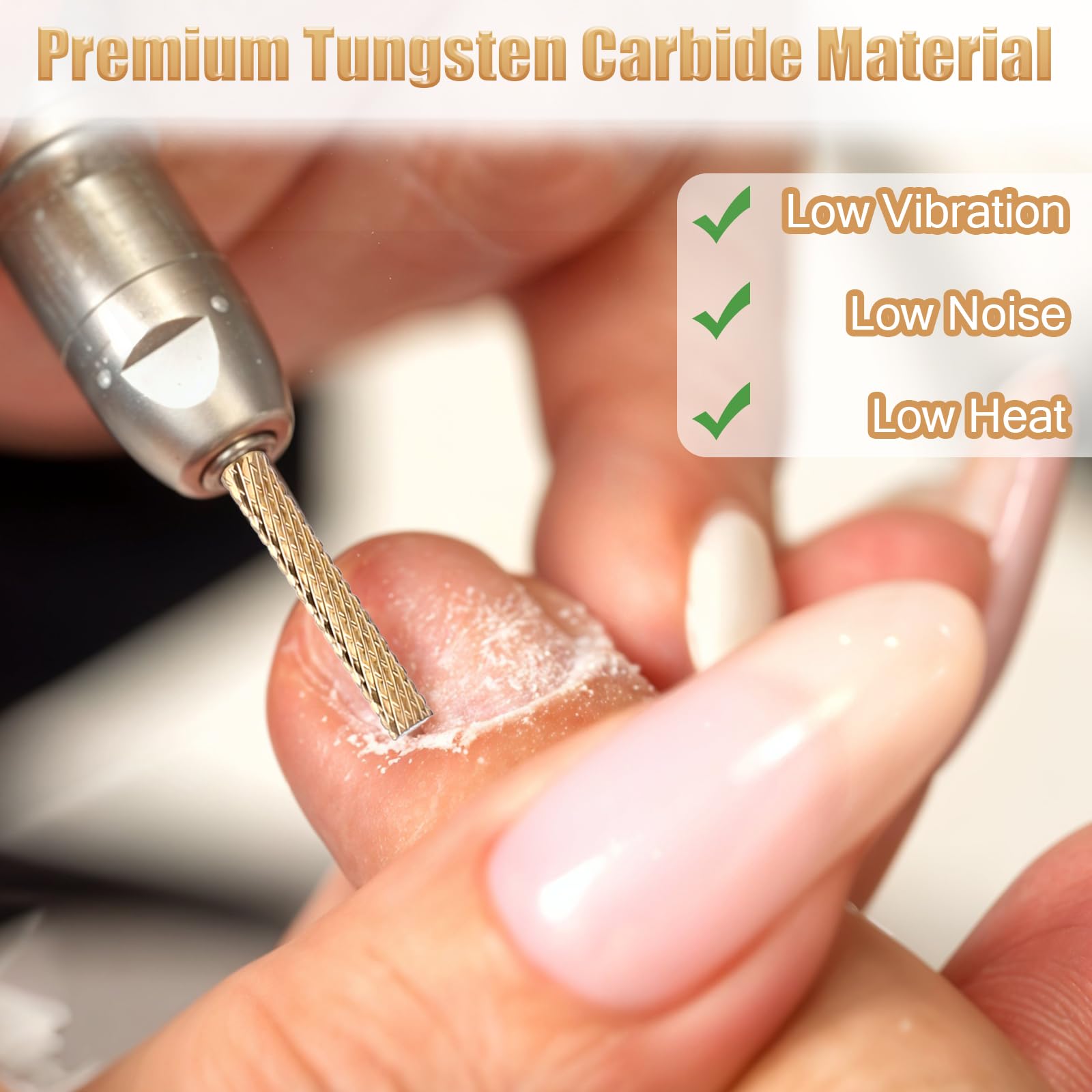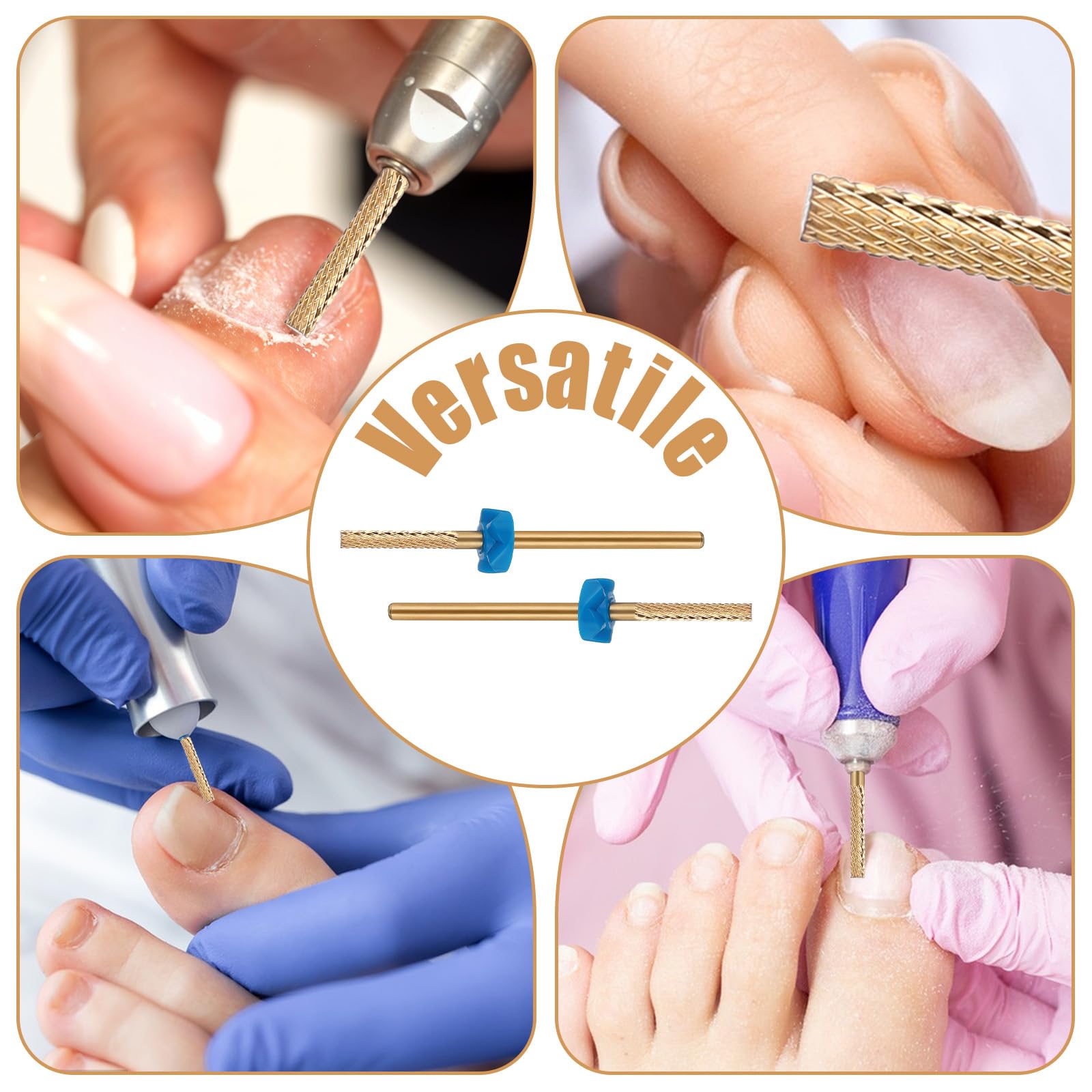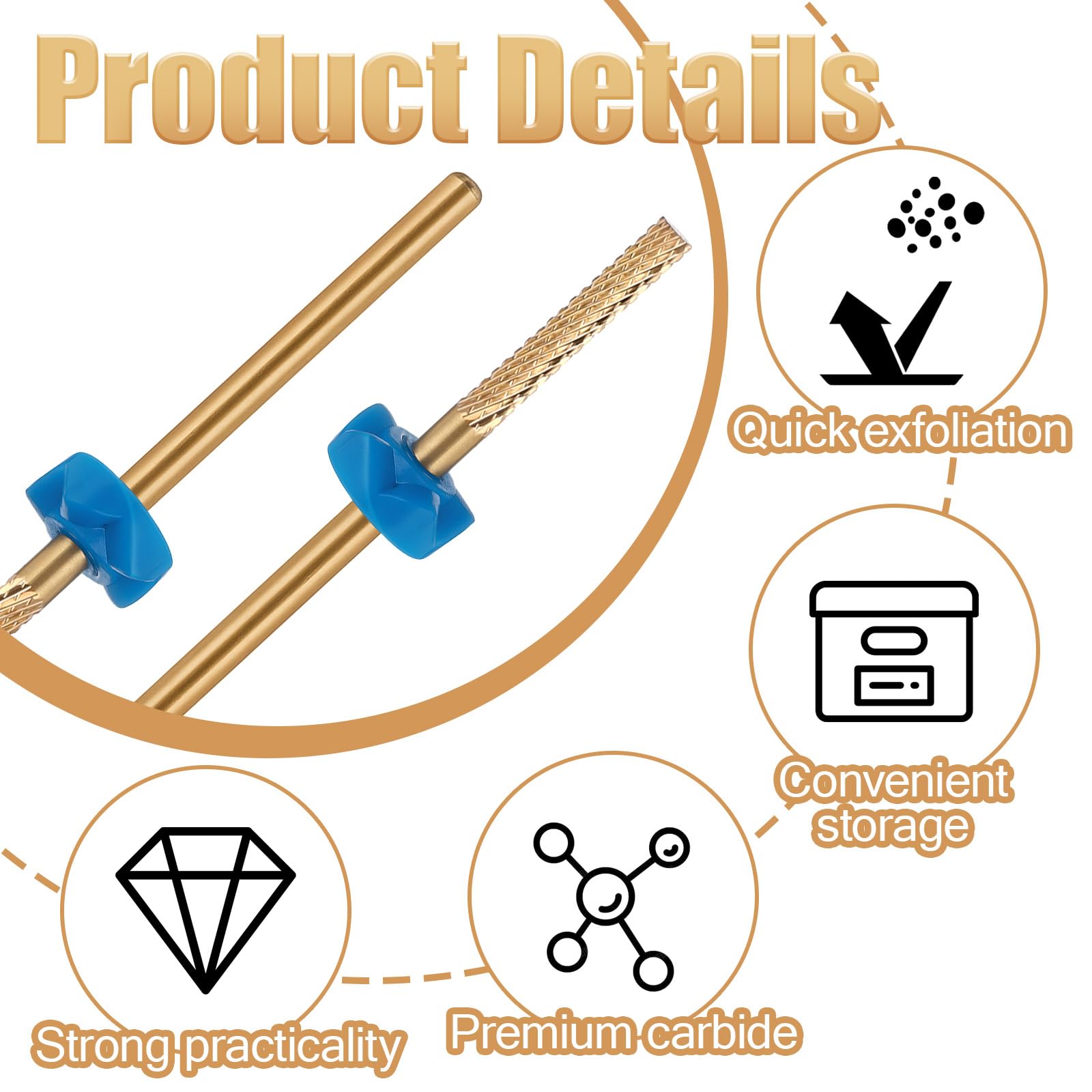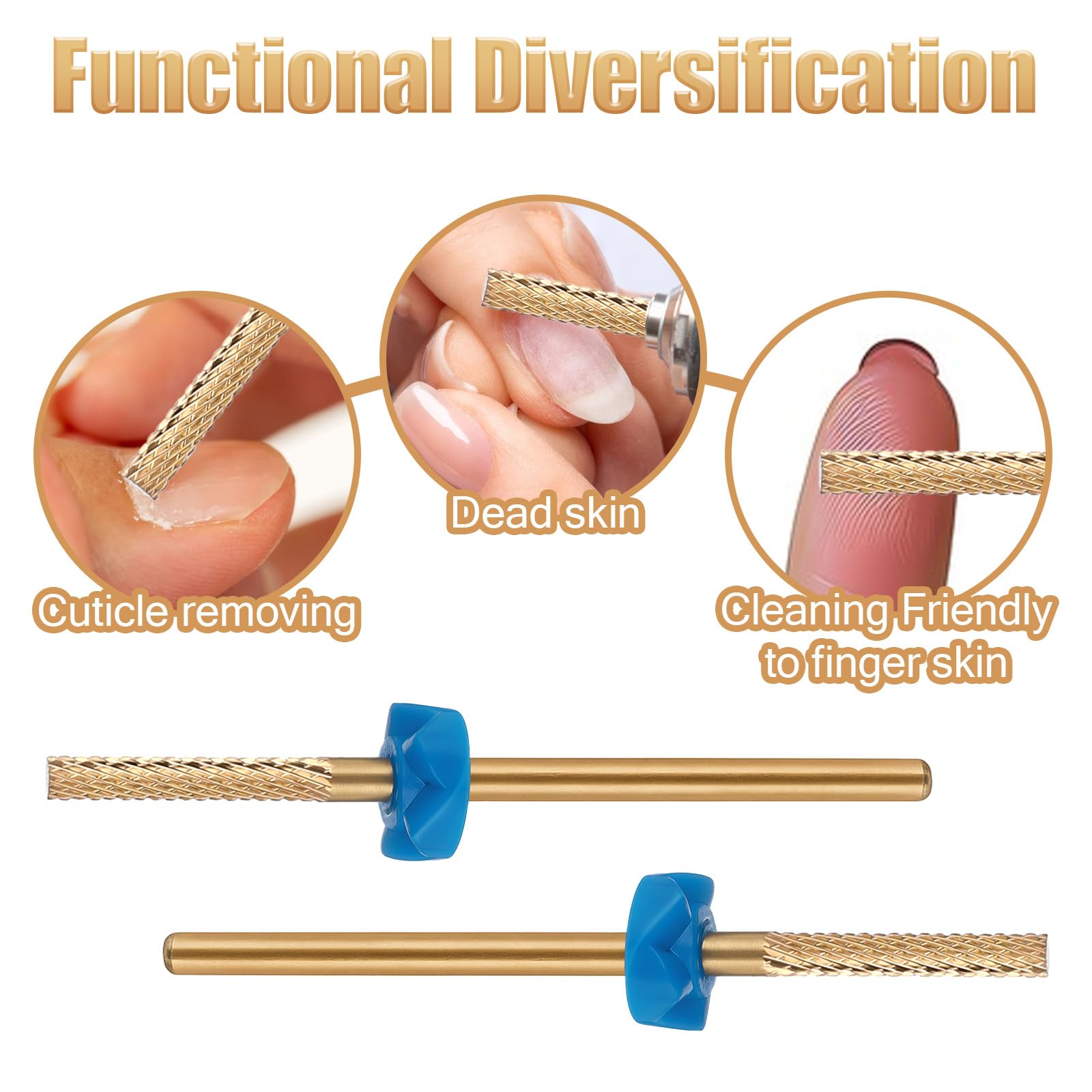 2 PCS Nail Drill Bits, Cuticle Clean Drill Bit, Carbide Drill Bits Remover Cuticle Bit for Cleans Dead, Suitable for Electric Nail File, Gold