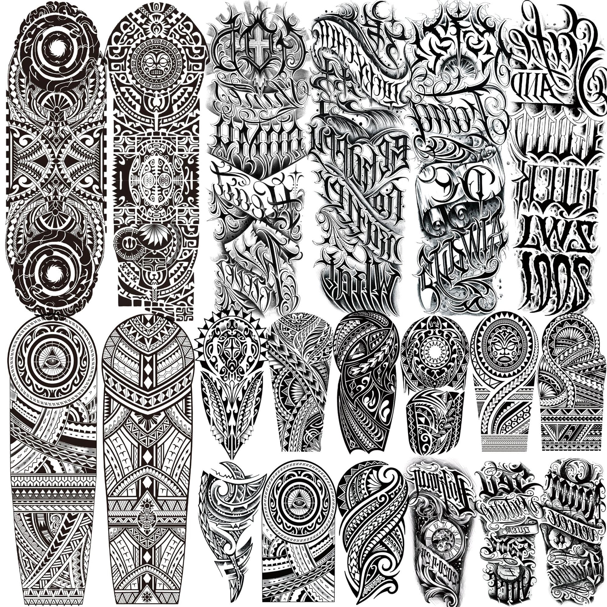 20 Sheets Maori Extra Large Full Arm Temporary Tattoos For Men Adults, 8 Sheets God Totem Armband Fake Sleeve Tattoos For Women, Long Lasting Temp Bulk Tribal Halloween Black Letter Tattoo Stickers