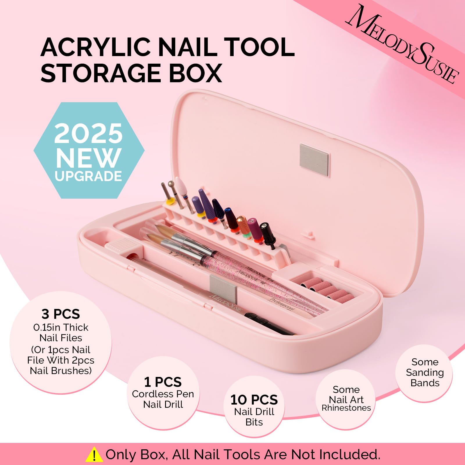 [2025 Upgraded]MelodySusie Acrylic Nail Tool Storage Box,Portable Dustproof Stand Displayer Holder Organizer Container Manicure Efile Accessories Nail Drill Kit Case,Travel Salon Home,Pink(Only Box)