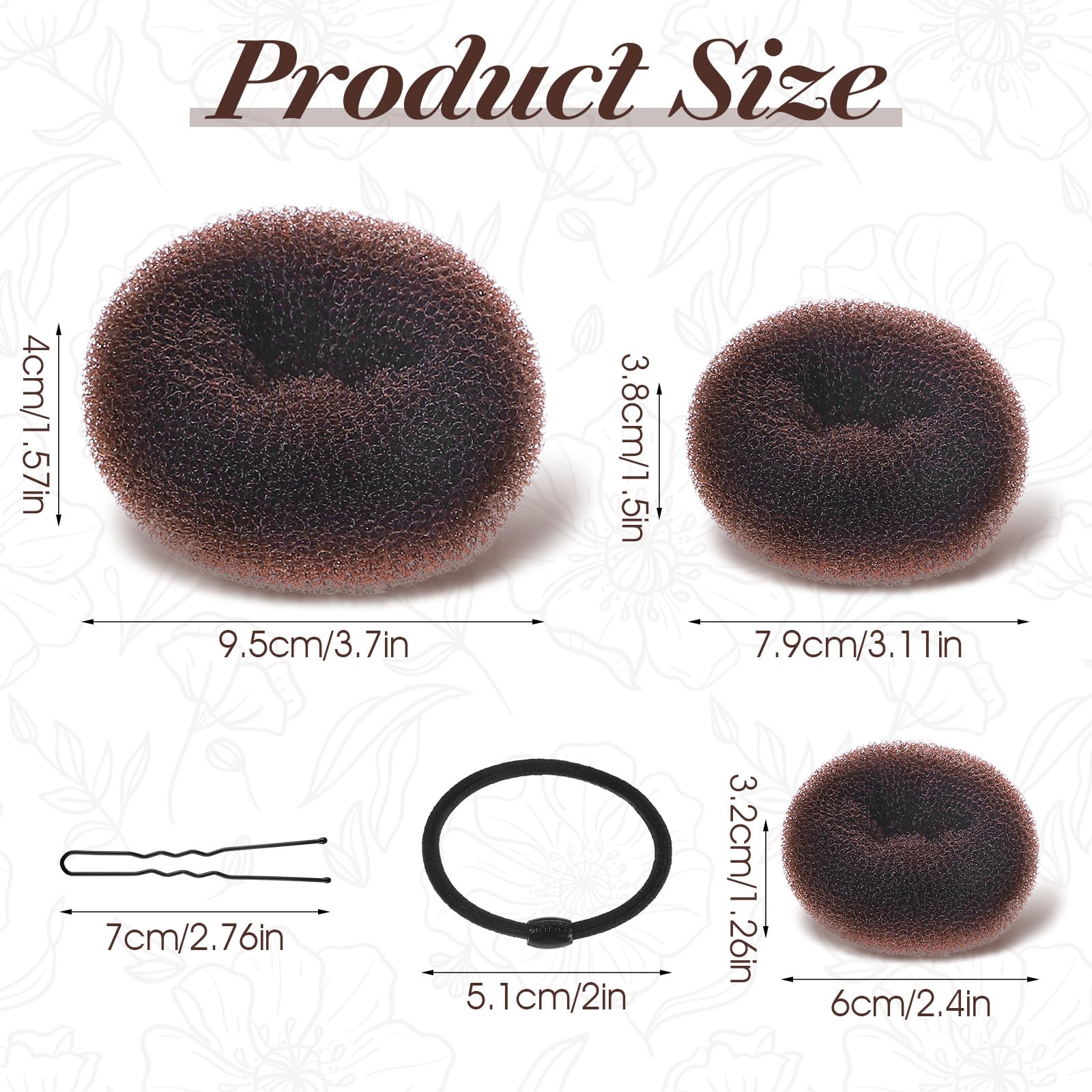 - 【Bun Maker Set】The bun hair maker set includes 6 pieces of donut hair bun maker (2 large, 2 small, 2 extra small), light brown, to help you make buns in an orderly, quick and easy way, 8 elastic hair bands and 10 hair clips. One set includes all the basic tools to make donut buns